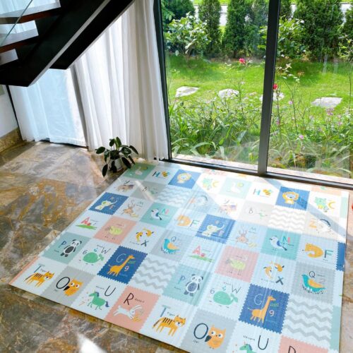 Có tới 2 mặt họa tiết dễ thương, đủ chữ số, chữ cái, tên con vật bằng tiếng anh để các bé thỏa sức khám phá và học hỏi